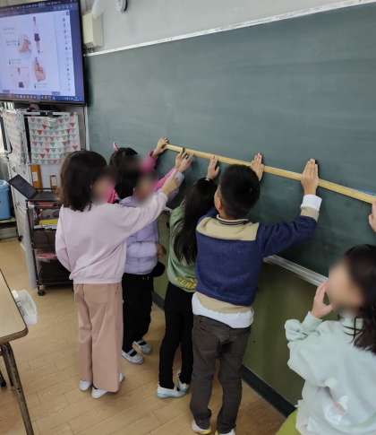 「30cmじゃ足りない!」と複数人で協力して測ることができました。その後、mについて学びました。