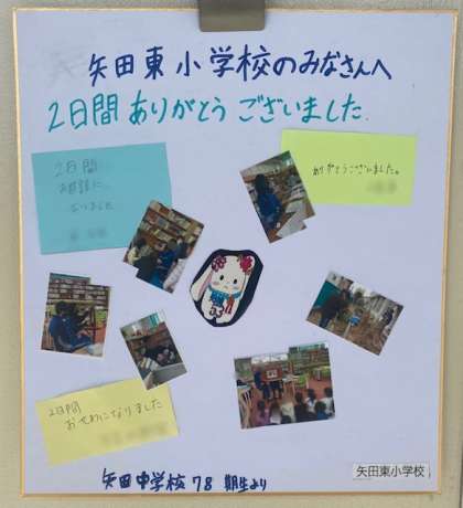 先月、矢田中学校の2年生が職場体験に来てくれていました。お礼のメッセージをいただきました。