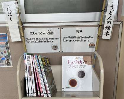 「和風だし」と「うどん」の図書の特設コーナー
