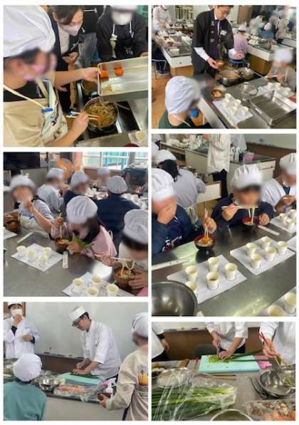 最後にうどん出汁もとって、おうどん、にんじん、お芋、ネギを入れて、「美々卯」のとってもおいしいおうどんをいただきました。「おいしい、おいしい」と、子どもたちはみんなたくさんいただきました。
