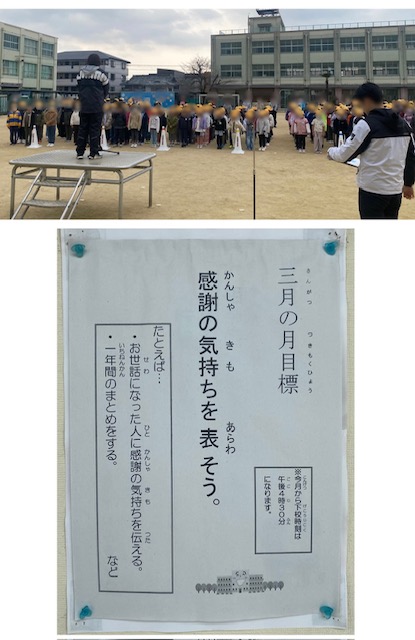 その後、生活指導の先生から今月の生活目標と、学年末であることからいろいろなまとめをしましょうというお話をしてもらいました。