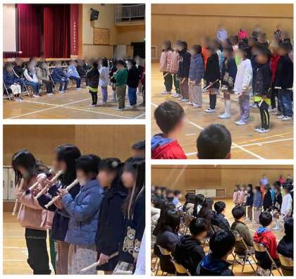 3年生からは、リコーダーを演奏しながら歌をプレゼントしてくれました。上手に1組、2組で交互にリコーダーを演奏していました。