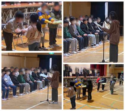 最後は、6年生から在校生にプレゼントを渡しました。6年生のみんな、ありがとう。