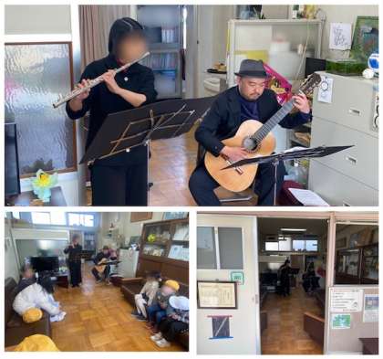 お昼休みに校長室からまたまたいい音が流れてきましたよ。今日もミニコンサートの開催です。今日はフルートとギターのセッションです。