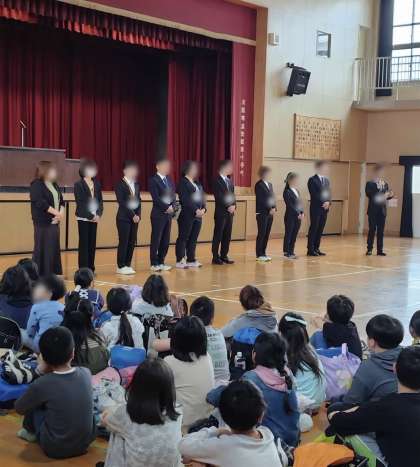 まずは、新しく矢田東小学校に転任された教職員の皆さんの紹介がありました。