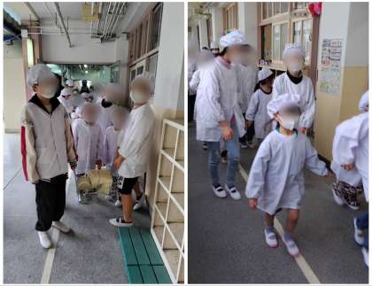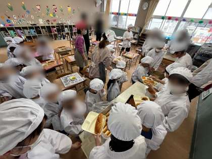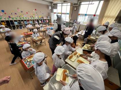 今日から給食が始まりました!1年生には6年生が付き添ってあげていました。