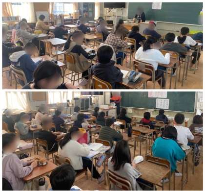 朝の会の時間、宿題の答え合わせや一日の予定を確認していました。