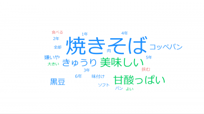 4月11日(木)の献立は「ミニコッペパン・牛乳・焼きそば・きゅうりのしょうがづけ・ソフト黒豆」でした。