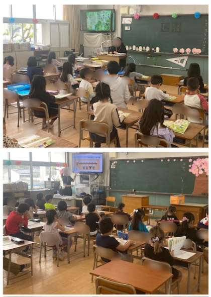1組、2組それぞれで、算数、国語の学習に取り組んでいました。どちらも集中してがんばっていました。