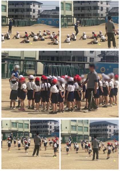 今年度も低学年(1、2年生)の体育は、矢田中学校から中学校の先生に来ていただいています。とても楽しく身体を動かしています。