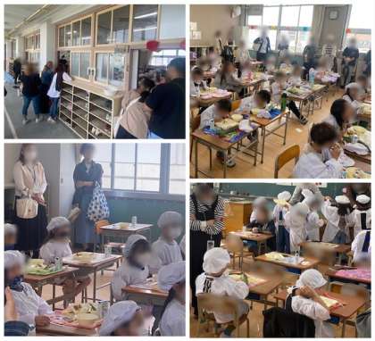1年生は給食参観を実施しました。準備、喫食、片付けをしている姿を観てもらいました。