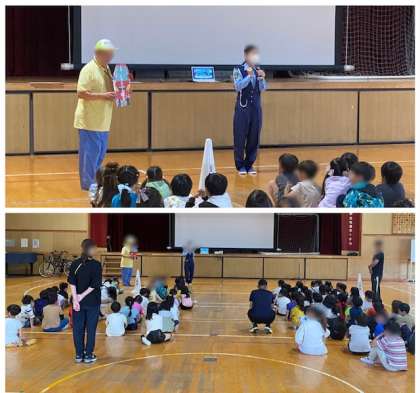 今日は、2時間目から交通安全指導がありました。2時間目は低学年、3時間目は中学年、4時間目が高学年でした。歩き方や自転車の乗り方などについて教わりました。警察の方と、区役所の青パトの方が来てくださいました。映像とていねいな説明でわかりやすく説明していただきました。