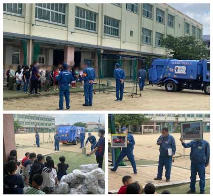今日は4年生は、環境局の方に来ていただいてパッカー車や大阪市のゴミのことについてお話を聞きました。