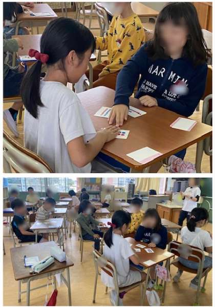 3年生が、算数カルタに取り組んでいます。算数のカルタ?あまり聞いたことがないですね。さて、どんなカルタなんでしょうね。子どもたちは、とっても楽しそうです。