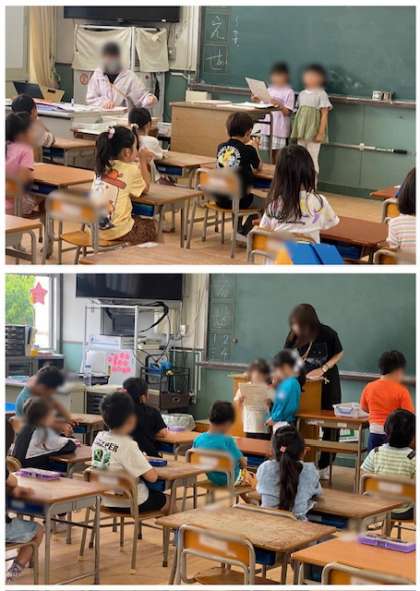 1年生の朝の会の様子です。2人の日直さんが司会進行しています。