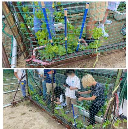 4年生はゴーヤの栽培をしています。タブレットを使って観察していました。