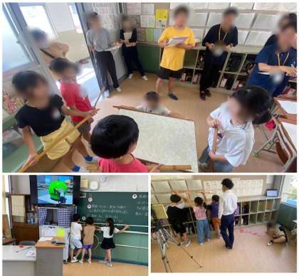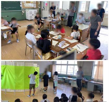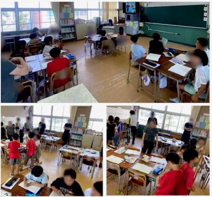 5時間目は3年生で算数の研究授業を行いました。前日に社会見学で行った、子ども本の森の大きな青リンゴのまわりの長さをはかるには・・・。みんなで考えました。