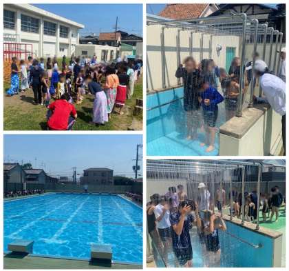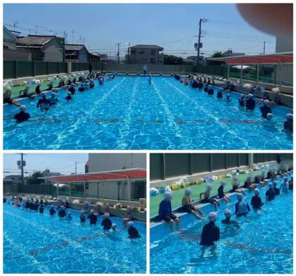 今日のプール開きは、1・6年生合同で行いました。なかよし班ごとのペアで、6年生が1年生と手をつないだり、プールに入るのに声をかけたりしてサポートして楽しく入りました。来週からはそれぞれの学年で入ります。