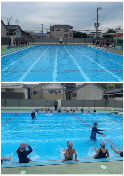 今日の1年生は6年生と一緒ではなく、1年生だけでプールに入りました。ルールをしっかり守ってプールに慣れることができました。