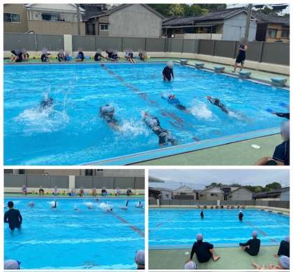 6年生も6年生だけでプールに入りました。クロールの息継ぎの仕方をしっかり身につけるように練習しました。