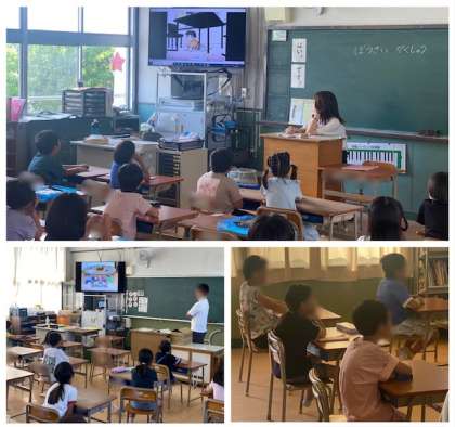 今日は、土曜授業で防災学習をしました。区役所、警察署、消防署のみなさんに来ていただきました。DVDで防災について学習しました。
