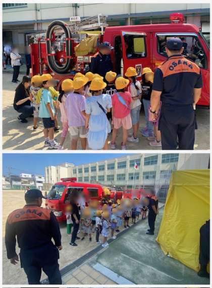 消防車も見学させていただきました。こんなに身近に見たり触ったりはなかなかできません。