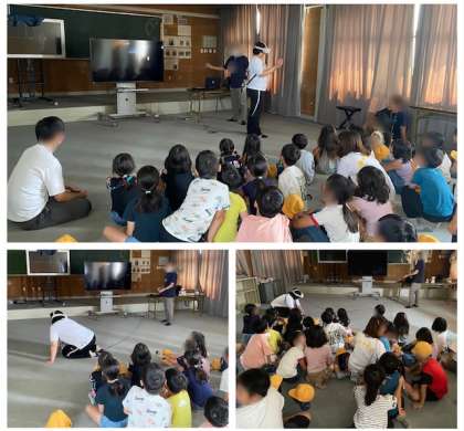 VR(バーチャルリアリティ)体験もありました。子どもがつけると気分が悪くなったりするので、先生方が代わりに体験しました。VRで見えているものをモニターに映していました。夜に地震が起こった場合などの疑似体験をしました。
