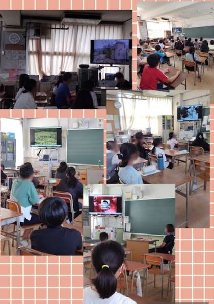 各教室で「青い空は」を歌い、学年ごとに平和学習に関するDVDを鑑賞しました。