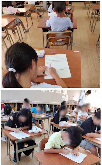 学習の最後に、今日の平和学習でわかったことや、今自分にできる平和についてのことをプリントに書きました。8月6日、9日、15日と、1学期やこれまでに学習してきた日付が続きます。なんの日だったのかをもう一度学習して振り返ってみてください。