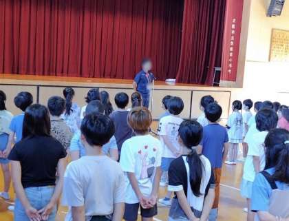 みなさんおはようございます。夏休みが明けて、2学期になって1週間が経ちました。先週末は台風10号が近づくとか、なかなか動かないとかで、やきもきしました。大阪に上陸しなくて良かったのですが、台風の被害に遭われた地域は本当に大変でした。台風が上陸したらあかんから、いろいろ備えていたかと思います。外に出歩くのを避けたり、旅行を延期したりしたかと思います。「でも結局来なかったから、遊びに行ったら良かったわ」とか思っている人もいるかもしれません。でも、6年ほど前に、大阪に大きな台風が上陸したことがありました。あの時、職員室前のさくらんぼの木が風で倒されました。図書室や南校舎の窓ガラスも割れました。台風が直撃すると、とっても大変な被害に遭います。ですから、「台風が来なくて良かった」「ちゃんと備えをしていて良かった」と思えるようにしましょう。地震も同じです。備えをしておくこと。大変大事なことだなと思いました。