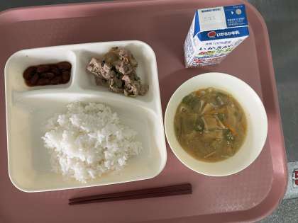 9月3日(火)の献立は「ごはん・牛乳・豚肉の甘辛焼き・とうがんのみそ汁・金時豆の煮もの」でした。