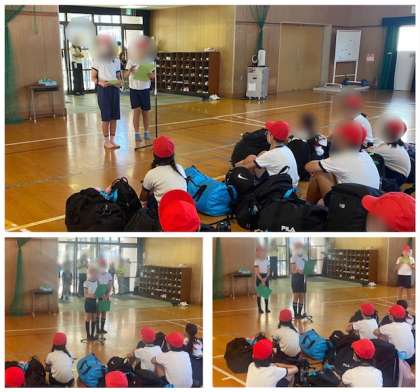 出発式を終えて、いよいよ神鍋高原に向けて出発します。みんな笑顔で元気に行ってきます!