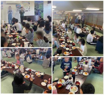 朝食です。この後の高原オリエンテーリングに向けて、しっかりエネルギーチャージをします。「いただきます」