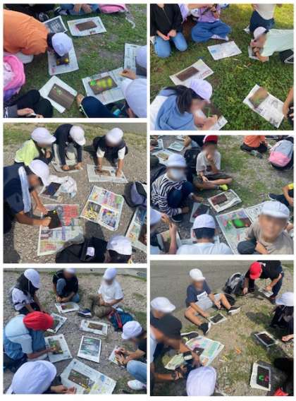 ペイントをしました。いろんな作品ができました。お家に持って帰りますので、お土産話と一緒にいて聞いてあげてください。
