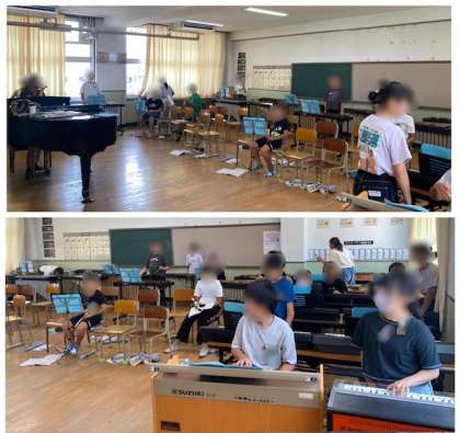 6年生は音楽で合奏をしていました。パートごとに練習して音を合わせる練習をしました。最後は全員で合わせましたが、うまくそれぞれの楽器の音が合わさりました。さすが6年生ですね。