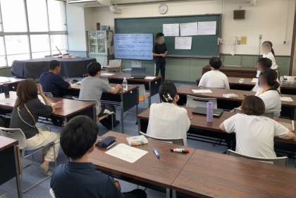 今日の放課後に、教職員研修会を行いました。講師の先生をお招きして、特別支援教育について学びました。