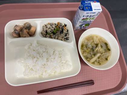 9月18日(水)の献立は「ごはん・牛乳・さけのつけ焼き・五目汁・高野どうふのいり煮」でした。