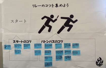 ?4年生の廊下に掲示していました。運動会に向けて、リレーのコツを、みんなで出し合っています。本番に向けて、意識を高めています。
