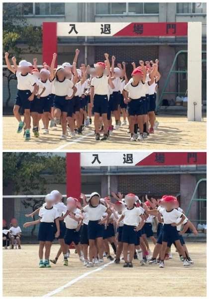ダンスで登場した3年生。トラック半周を駆け抜けました。