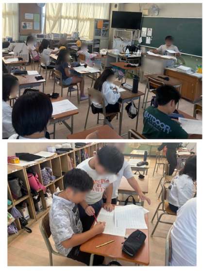 5年生の朝の様子です。運動会で着ていたかっこいいはっぴがありました。