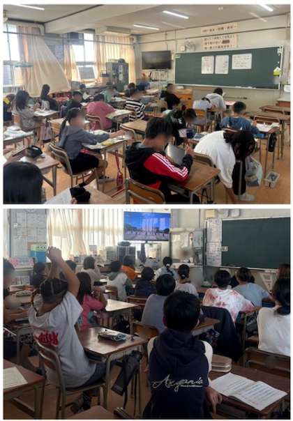 6年生の朝の様子です。運動会の自分たちの演技を見て振り返っていました。