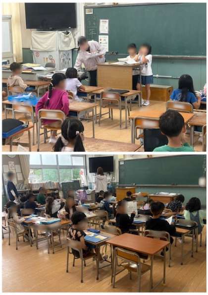 1年生は、朝の活動で日直さんが朝の会を進行したり、個人ではタブレットPCの活用を行ったりしています。