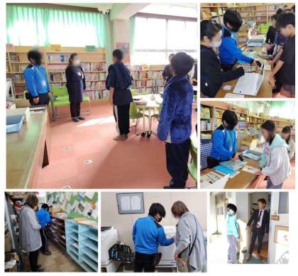 矢田中学校の2年生で矢田東小卒業生が、小学校に職場体験に来てくれました。図書室や職員室の印刷などの作業を体験しました。