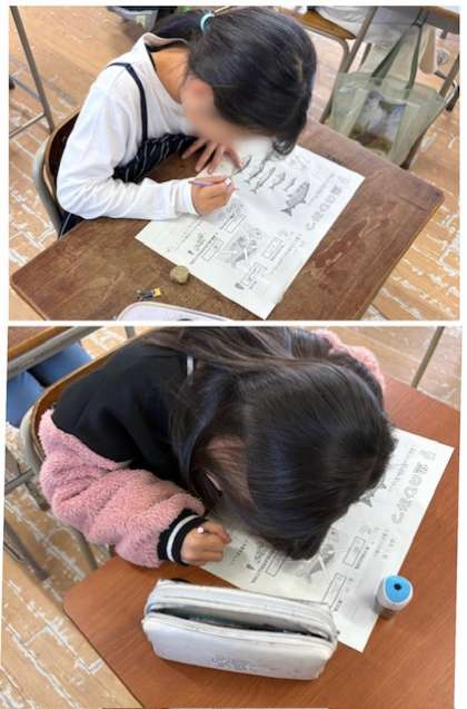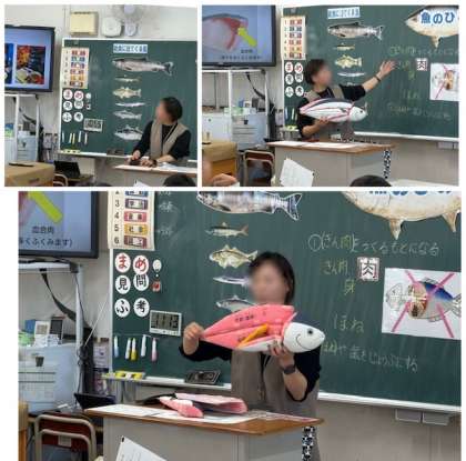 授業の最後に感想やふり返りを書きました。みんな「わかりやすかった」「魚のひみつがよくわかった」「魚を食べようと思いました」と書いていました。