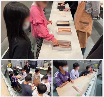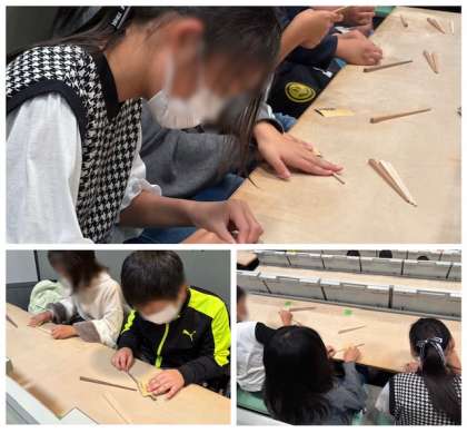 4年生は、木工工作を体験しました。お箸を二膳ずつ作りました。