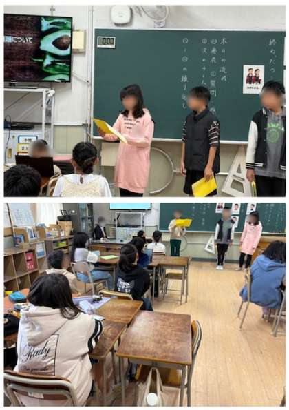 6年生は、国語科の「プレゼンテーションをしよう」の学習で、グループごとに調べたことをパソコンのパワーポイントを使って発表しました。パワーポイントの出来も良いのですが、質問にもしっかり答えているところも素晴らしかったです。
