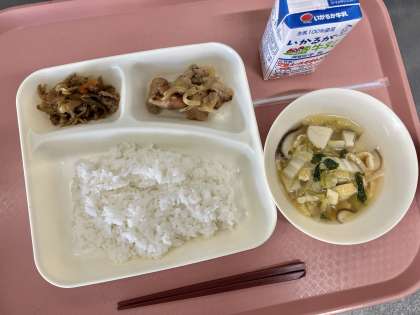 11月20日(水)の献立は「ごはん・牛乳・鶏肉の梅風味焼き・うすくず汁・きんぴらごぼう」でした。