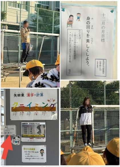 生活指導担当の先生から12月の目標について、学力向上担当の先生からは来週からスタートの「クライミングパワーアップ週間☆チャレンジ」についての話がありました。クライミングパワーアップ週間については、玄関に掲示している「さくらちゃん」の調子が悪いようです、との連絡でした。みんなで助け出してほしいとのこと。さてさてどのようにすれば良いのでしょう。注意してみておいてくださいね。
