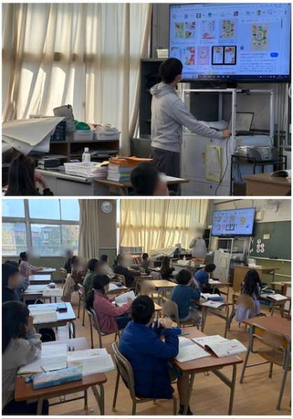 2年生は国語で「年賀状を書こう」を学習しました。年賀状のテンプレートをみんなで見て、どんなことを書くのか調べました。