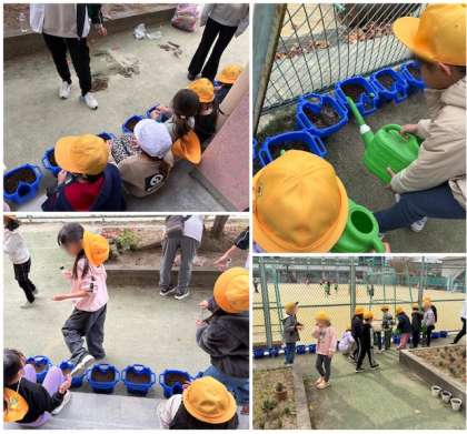 1年生は、チューリップの球根を植えました。毎朝、楽しみながら水やりをしています。